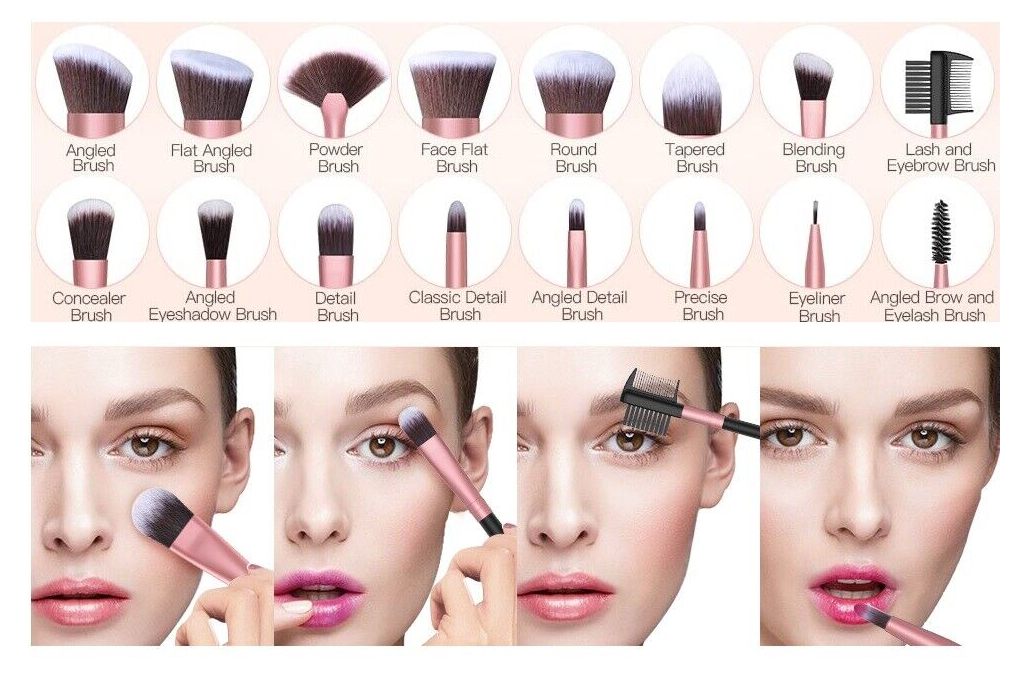 • ESSENTIAL MAKEUP BRUSH SET: Features 5PCs big kabuki makeup brushes and 11PCs precise make up brushes. This brushes kit includes everything you need for a natural look face and eye makeup application