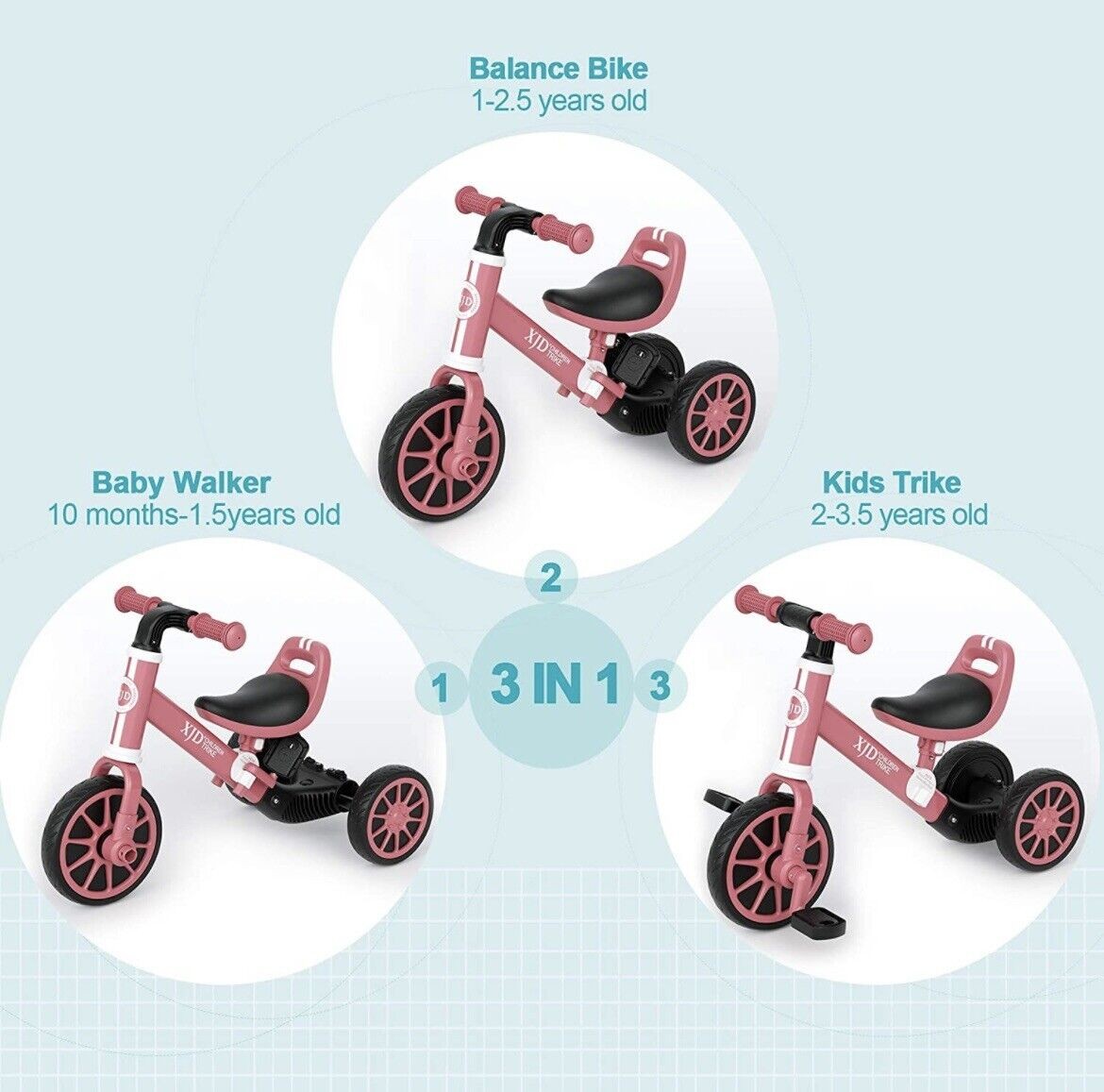 3 in 1 Kids Balance Tricycle Toddler Girl Boy Adjustable Seat Removable Pedal