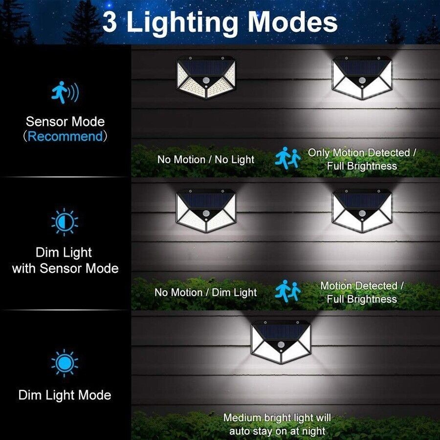 4x 100 LED Solar Power Wall Light Outdoor PIR Motion Sensor Security Garden Lamp