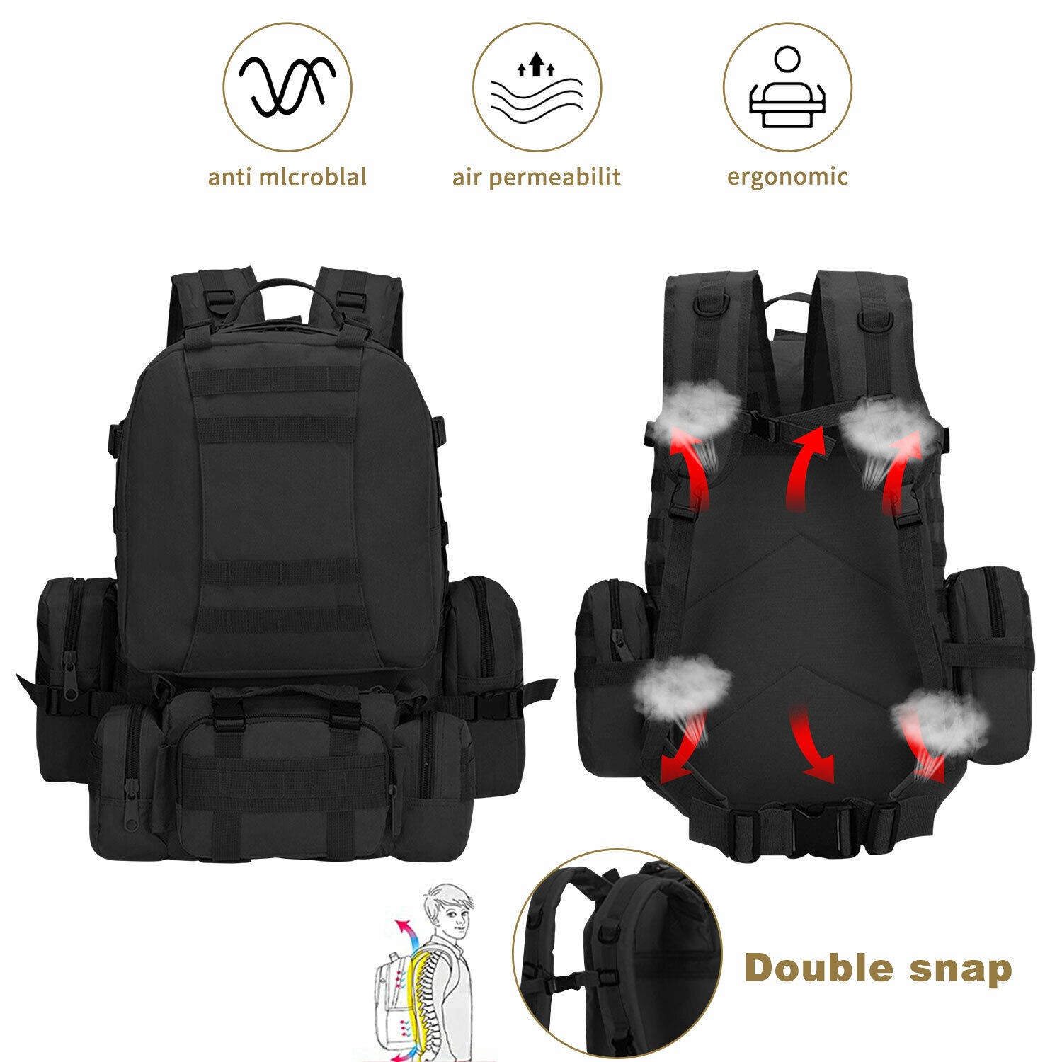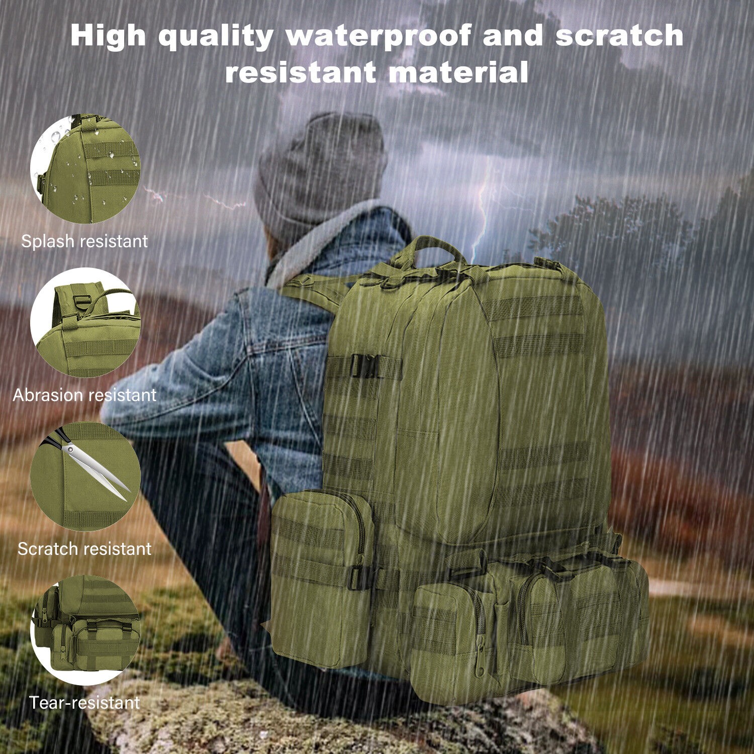 55L Large Tactical Backpack Military Army Molle Bag Rucksack 3 Day Assault Pack