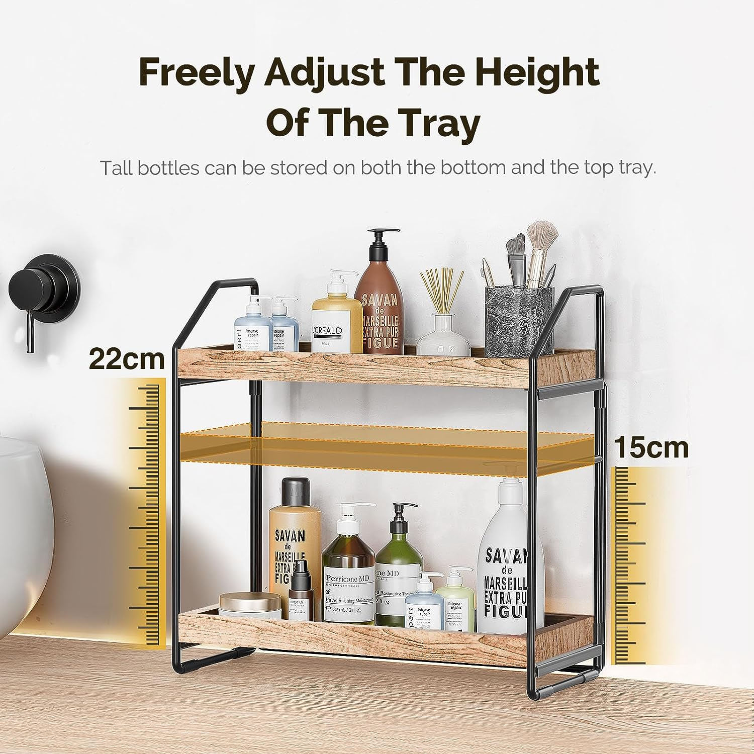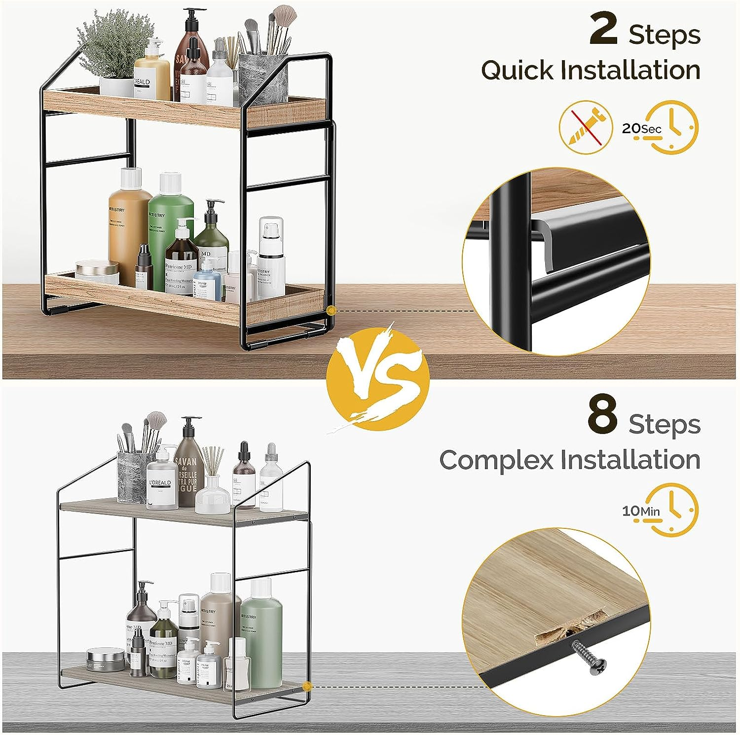 Adjustable 2-Tier Bathroom Countertop Organizer: No Screws Quick Installation So