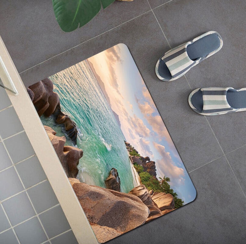 Soft feeling and comfortable. - PVC mesh bottom, non-toxic, odorless, not moldy. - Easy absorb water and dust,good slip resistance. - Anti skid water absorption, not easy to drop the villus. - Plum shape blossom point plastic bottom, wear-resistant, no damage to the floor.