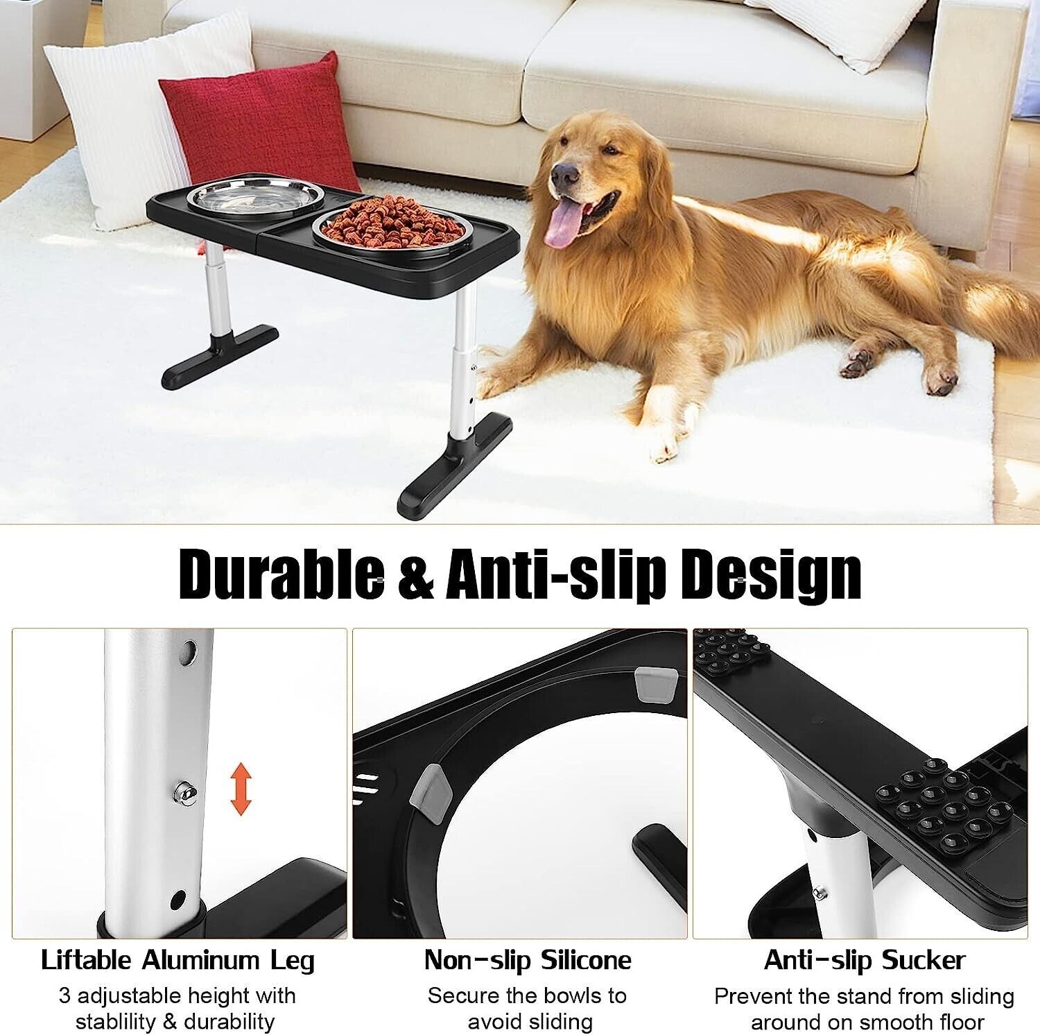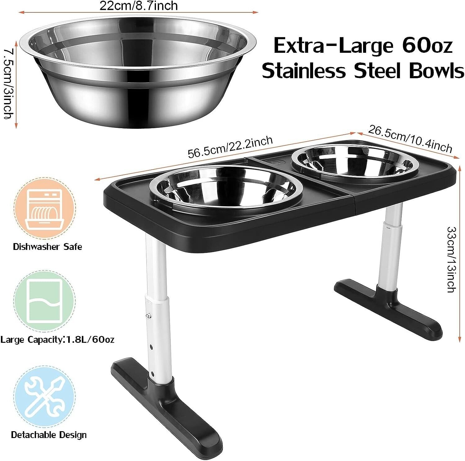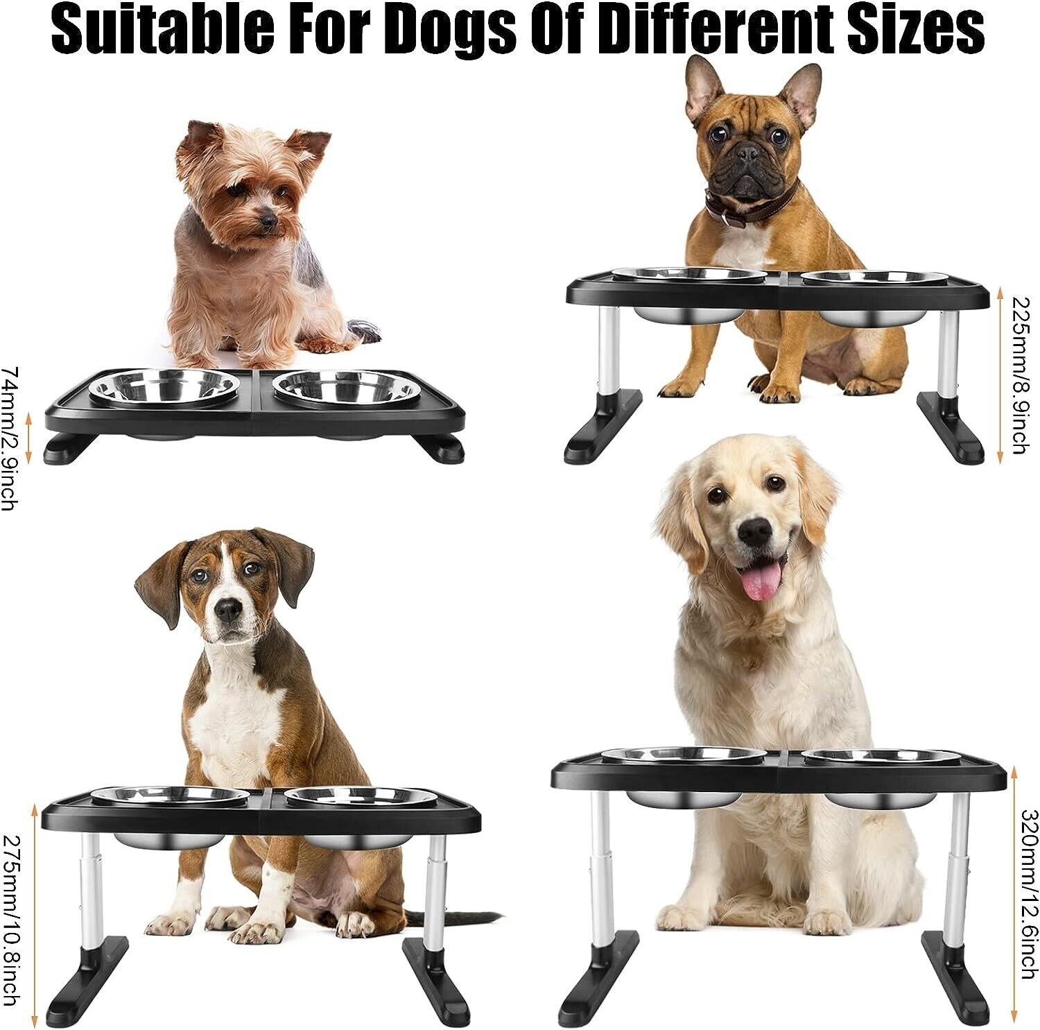 Elevated Dog Bowls for Large Dogs, 4 Adjustable Heights Raised Pet Bowl Stand US