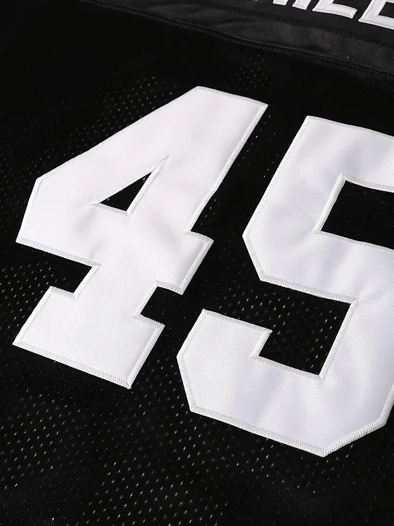 Jersey,Polyester,Mesh Pull On closure Hand Wash Only FABIRC→ 100% High Quality Polyester and Mesh Breathable Fabric, our Football jerseys are crafted from lightweight material, offer you superior comfort, perfect for spring, summer and fall FIT→ Football jersey fashion hip hop party jersey, size are US standard size and loose fit, if you have big belley and wide shoulders, we recommend you to go up one size DESIGN→ Double stitched name and numbers / Loose fit /sleeveless /Casual unisex wear, s