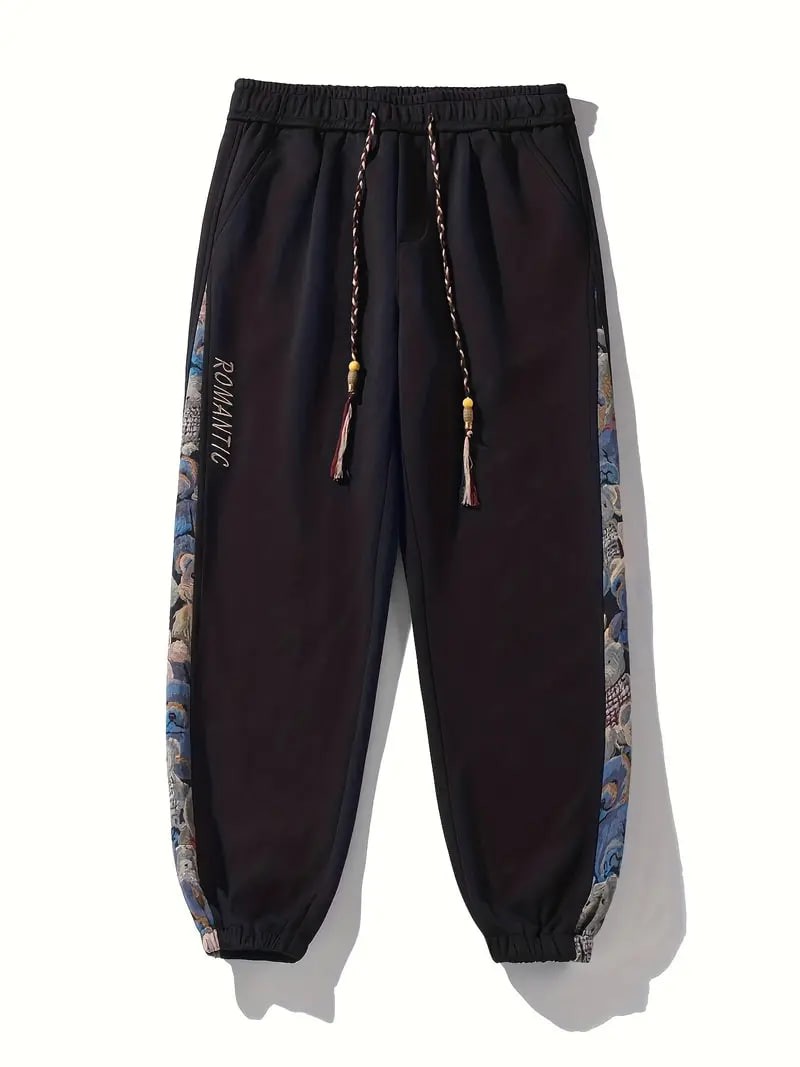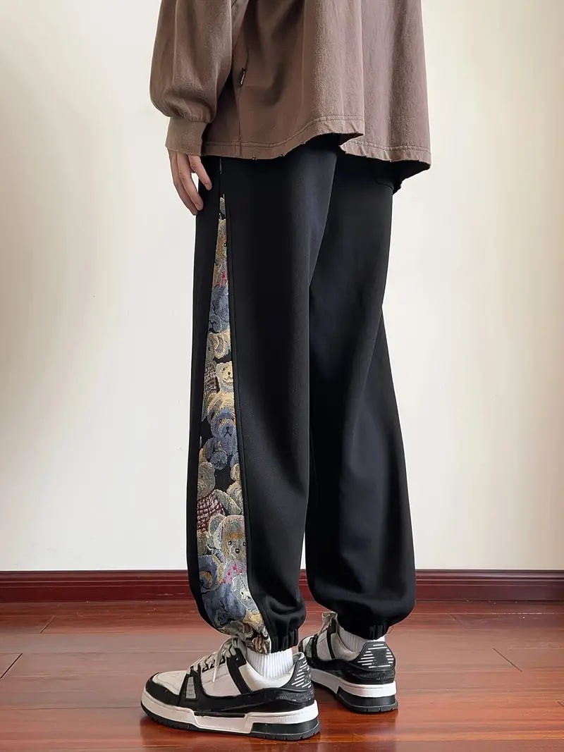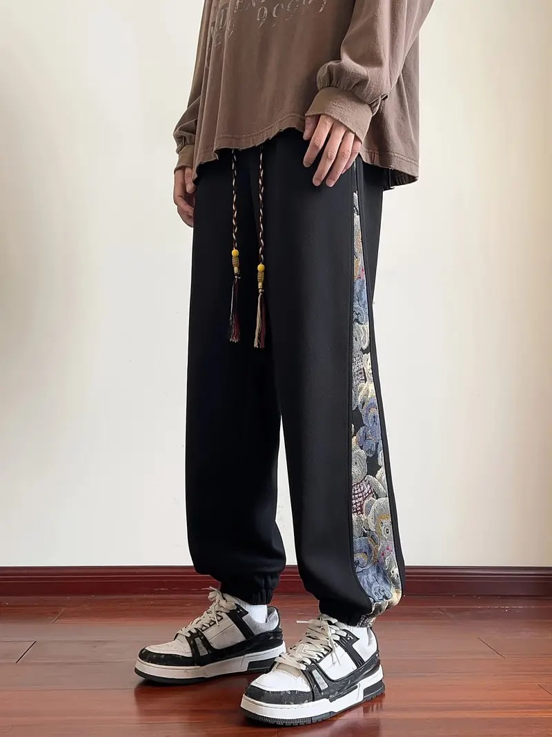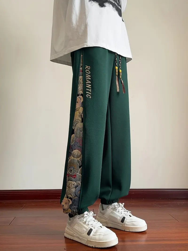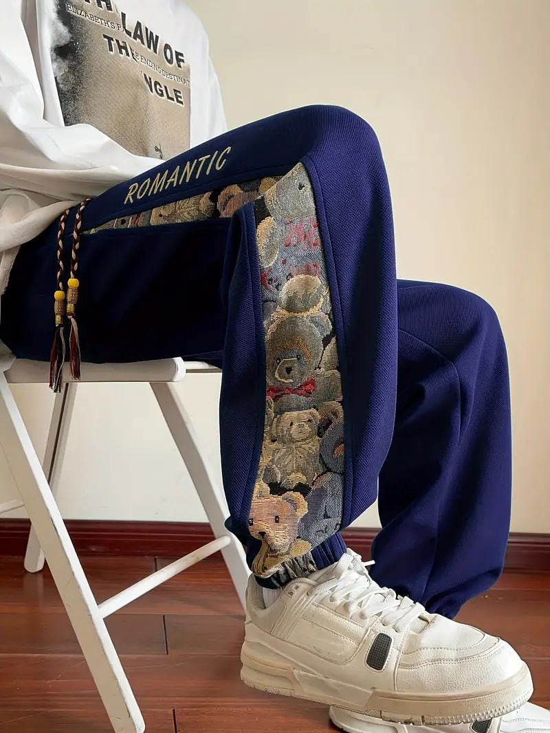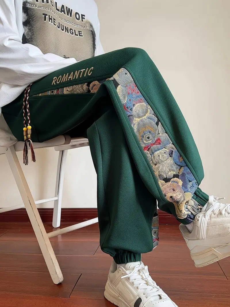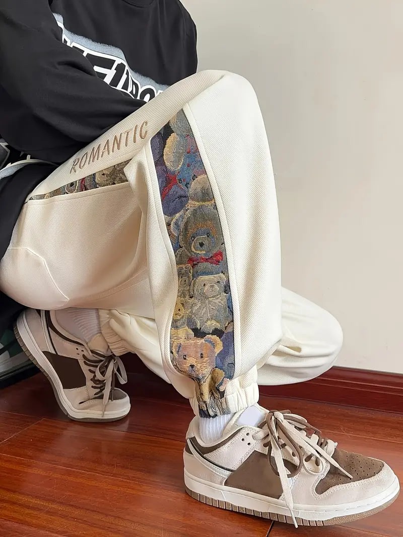 mens loose fit bear embroidery joggers casual stretch street style sports pants details 1mens loose fit bear embroidery joggers casual stretch street style sports pants details 1