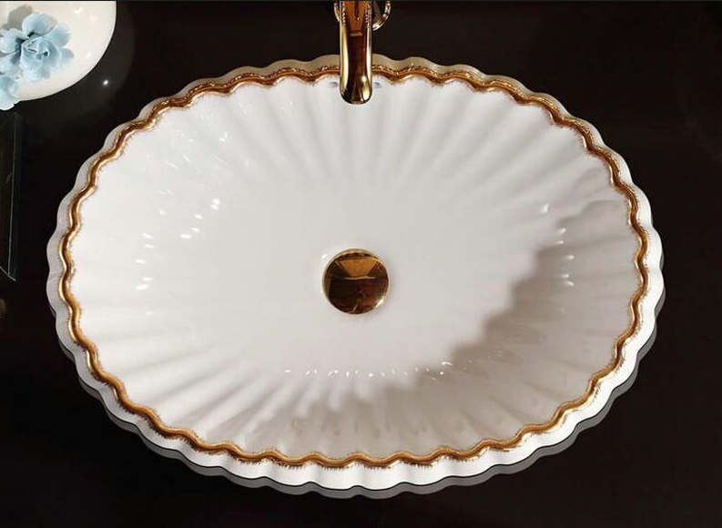 OVAL SEMI COUNTER WASH BASIN WITH OVERFLOW BATHROOM SINK WHITE PORCELAIN CERAMIC