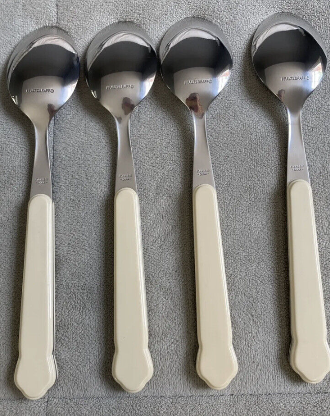Add elegance to your dining table with this 20-piece flatware set from Pfaltzgraff. The set includes salad forks, teaspoons, dinner knives, place/oval soup spoons, and dinner forks, all made of high-quality stainless steel. The ivory-colored handles are adorned with a beautiful floral pattern, making it perfect for all occasions.