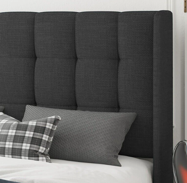 Wingback Headboard: This queen-size platform with headboard has a linen-inspired fabric finish with buttonless square tufting for a classy look.