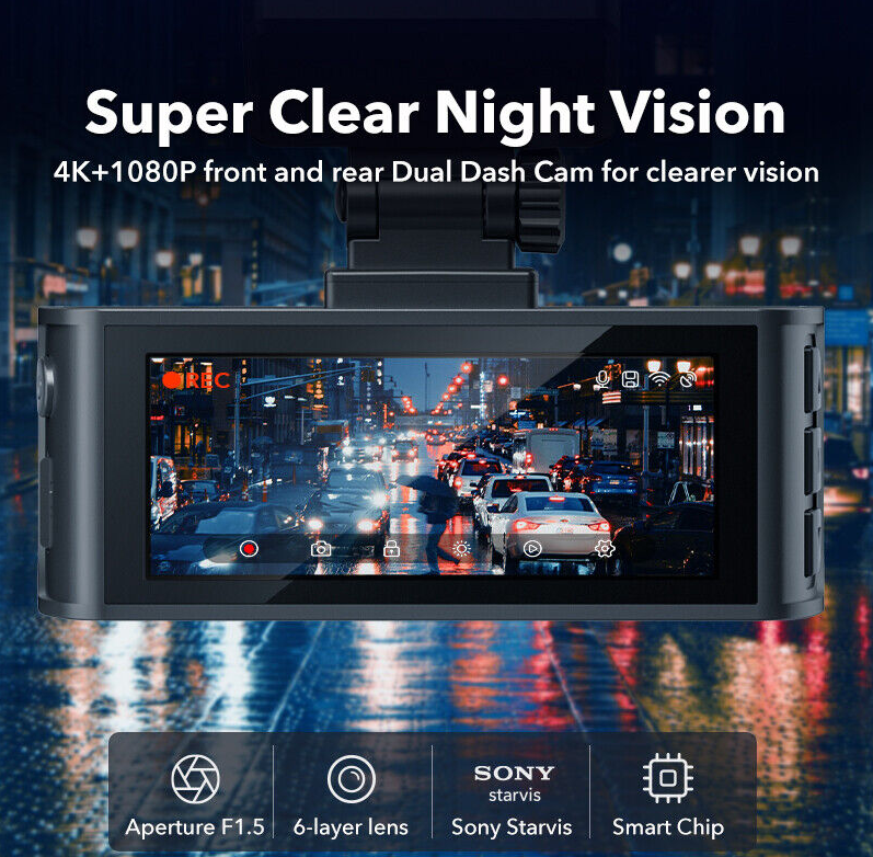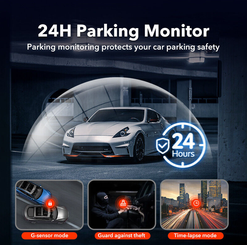 24H Non-Stop Parking Monitor, Real Ultra HD 4K+1080P Dual Dash Cam, Super Night Vision