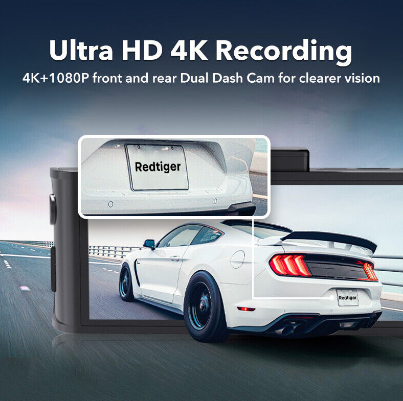 • [Ultra HD 4K+1080P Dual Dash Cam] Featuring top quality 4K front camera and 1080p rear cam, the REDTIGER dashcam is able to capture more detailed images, including street signs and license plates. Additionally, with wide-angel camera, the dashcam is with extended views and less blind spots.