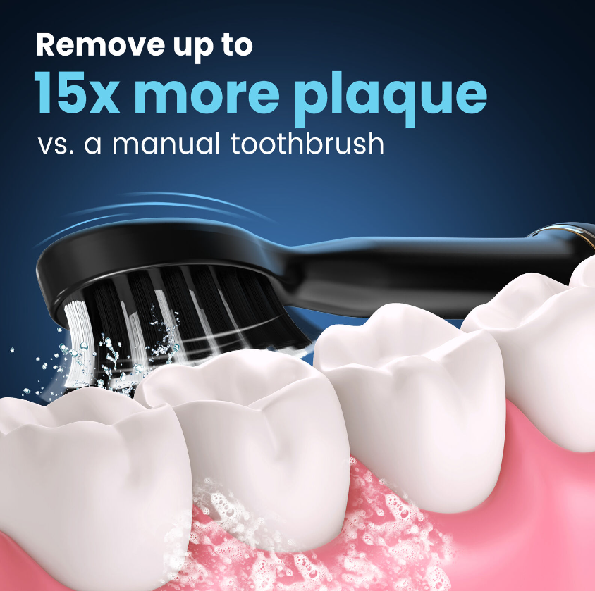 The electric toothbrushes for adults can effectively remove up to 100% plaques. Get a thorough 15X cleaning effect than manual toothbrush, 3X than ordinary electric toothbrush.