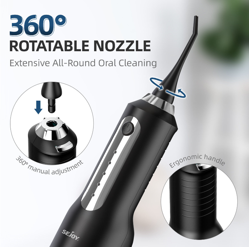 • 【8 PCS 360° Rotatable Nozzle】equipped with 8 PCS water jet tip which can be used with your family. (SUGGESTION: To maintain hygiene, it is recommended to replace the nozzle every 3 months). 360° rotatable nozzle design allows you to easily clean food residue hidden deep, massage the gum effectively and promoting blood circulation.