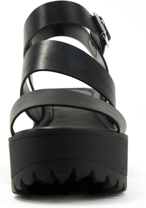 Soda ACCOUNT ~ Women Open Toe Two Bands Lug sole Fashion Block Heel Sandals with Adjustable Ankle Strap