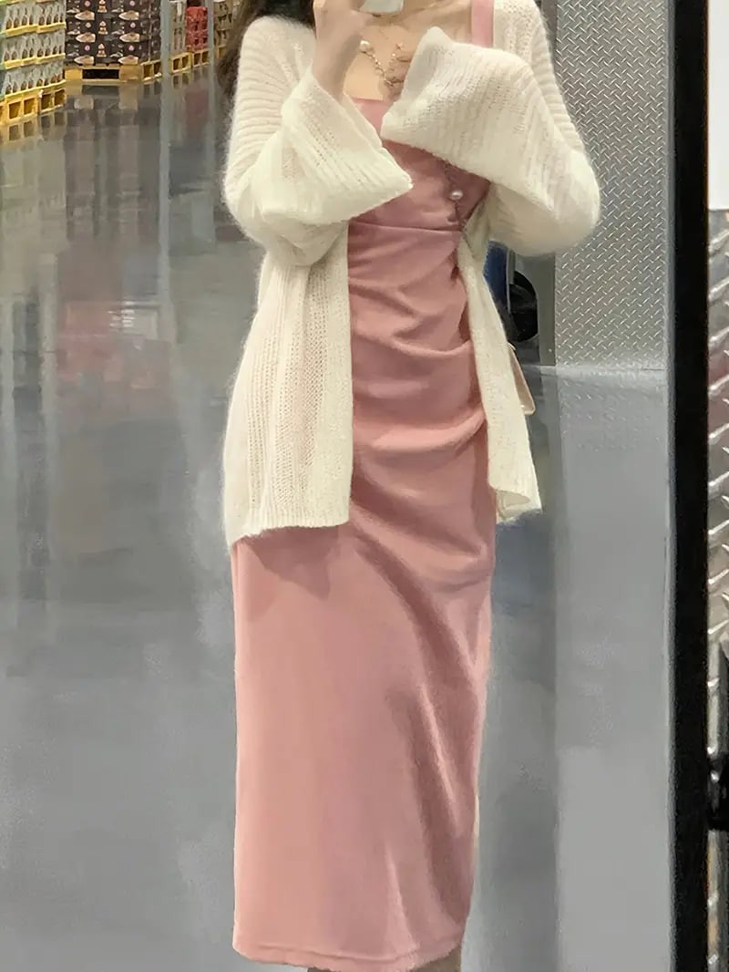 Solid Pleated Split Hem Tank Dress, Elegant Sleeveless Square Neck Dress For Spring & Summer, Women s Clothing details 1Solid Pleated Split Hem Tank Dress, Elegant Sleeveless Square Neck Dress For Spring & Summer, Women s Clothing details 1