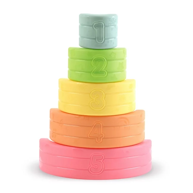 • Encourages stacking skills, fine motor skills, sensory development, and color recognition