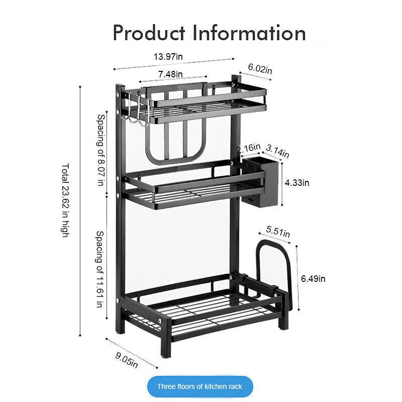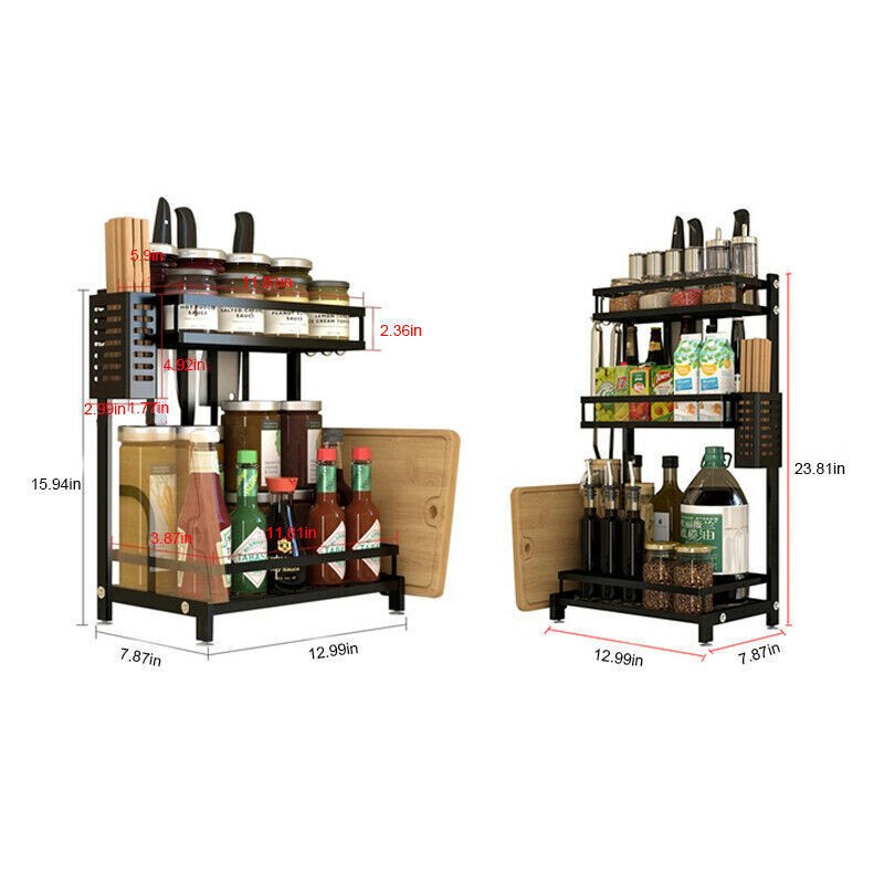 Stainless Steel Kitchen Shelf Condiment Rack Storage Organizer Countertop Holder