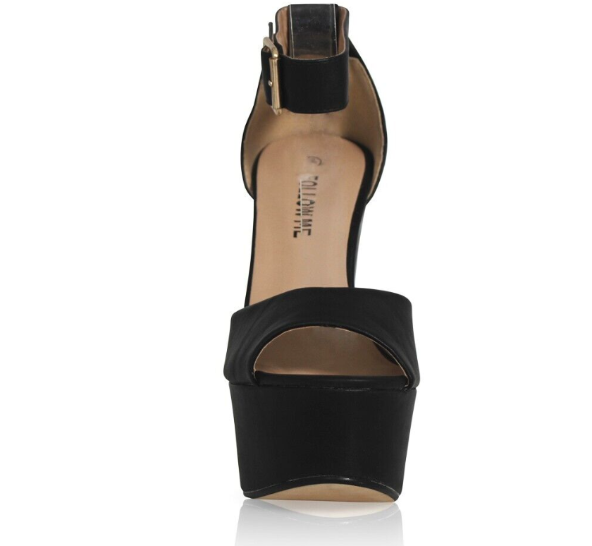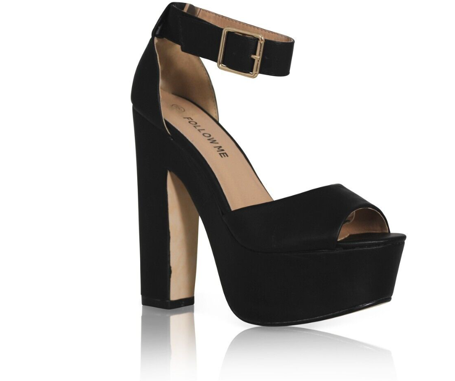 Womens Platform Chunky Heels Sandals Ladies Ankle Buckle Strap Peep Toe Shoes